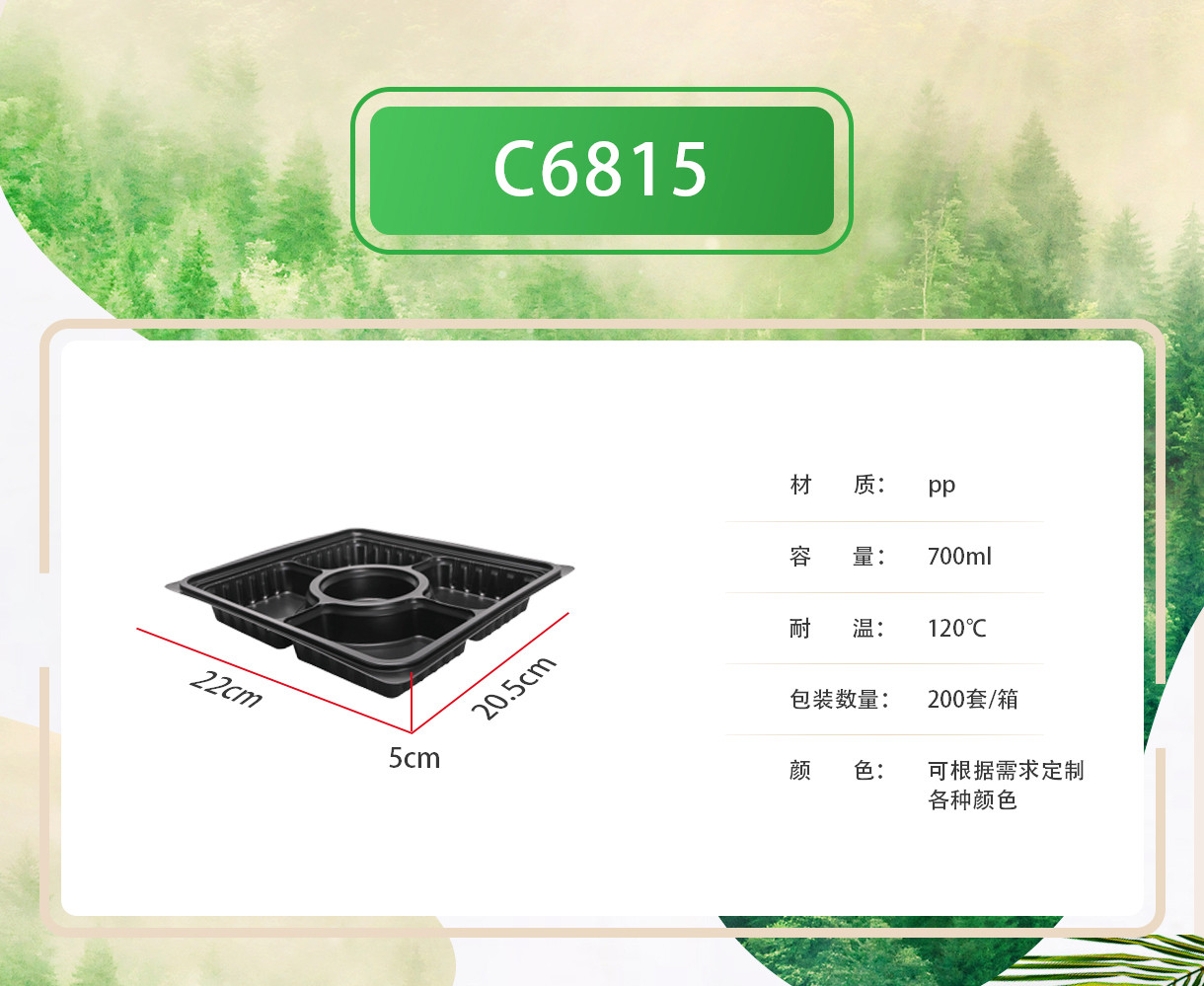 BOPS蓋黑色方形五格快餐盒