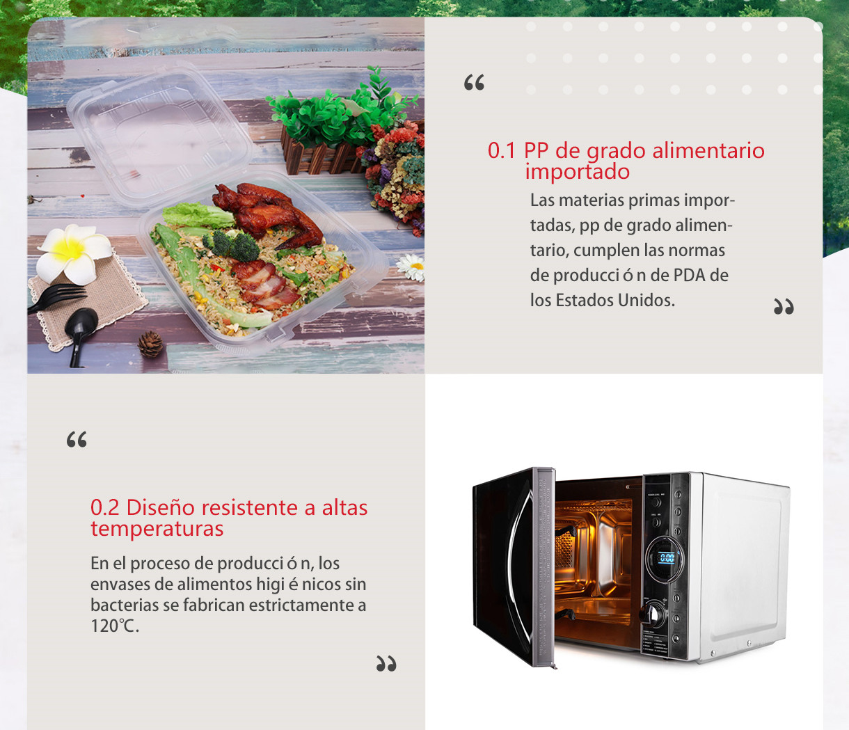 Caja de comidas desechables de pp con tapa y cierre, caja de comida rápida cuadrada y negra